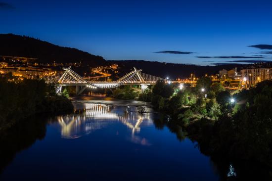 Обои Лучи солнца пронизывают лес и мост над рекой