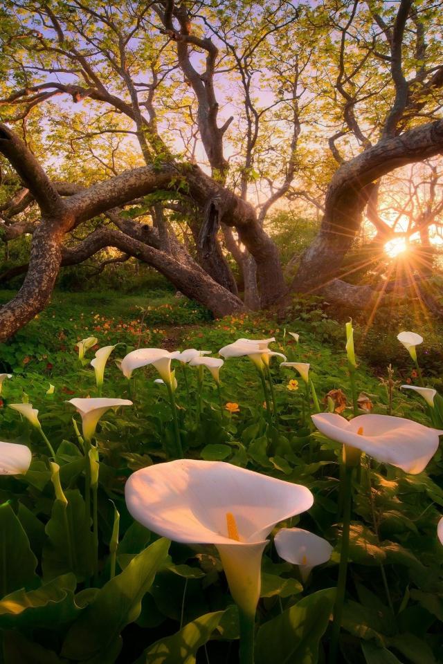 Обои Белые лилии под деревом, Калифорния США
