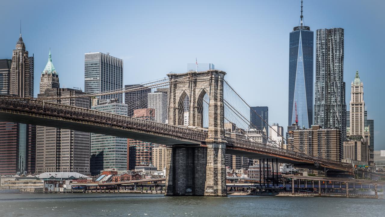 Обои Бруклинский мост с видом на город Манхэттен. США