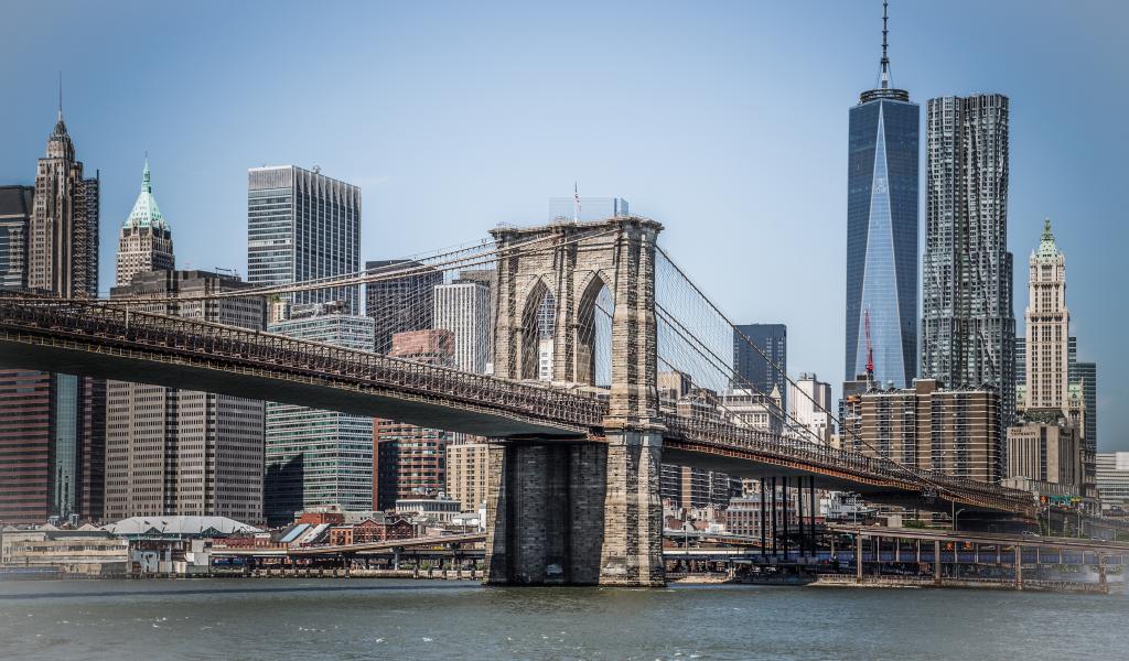 Обои Бруклинский мост с видом на город Манхэттен. США