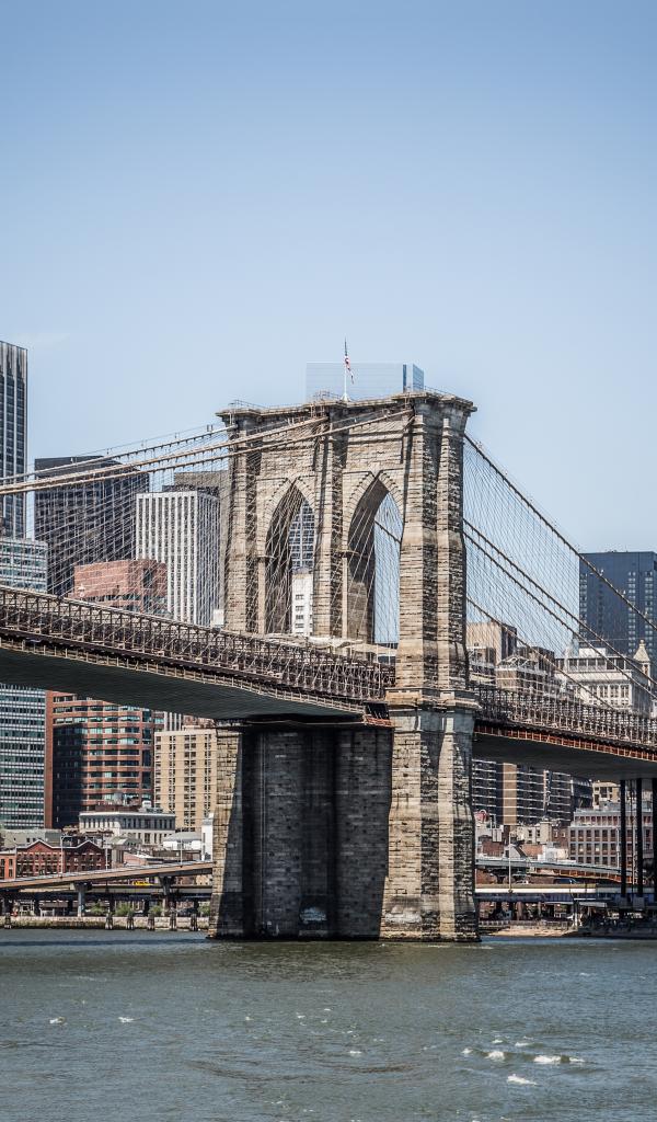 Обои Бруклинский мост с видом на город Манхэттен. США