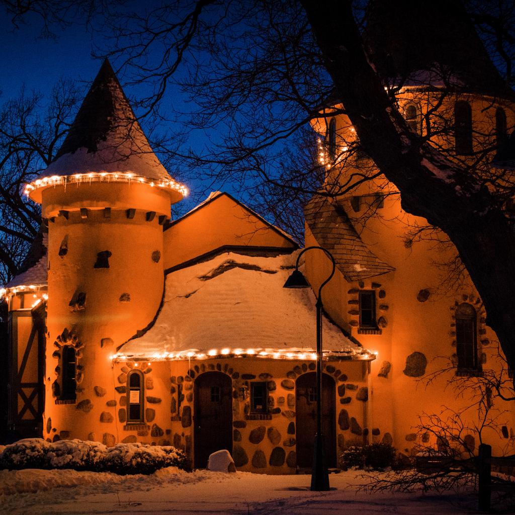 Обои Музей Curwood Castle вечером, Мичиган. США
