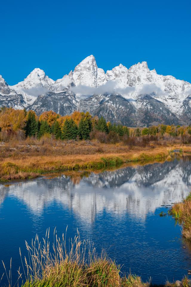 Обои Горы и река в национальном парке Гранд-Титон, США