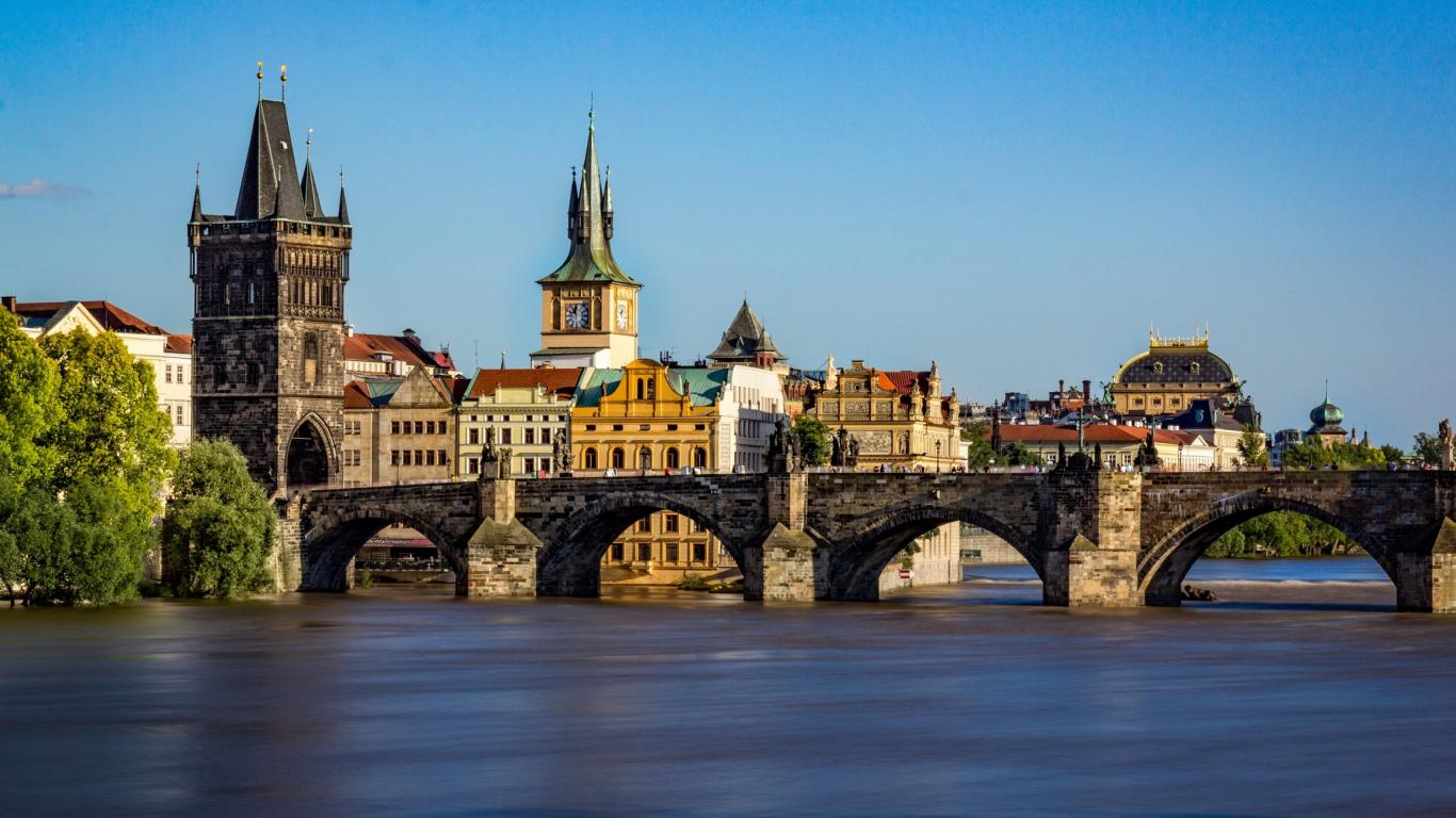 Обои Средневековый арочный Карлов мост,Прага, Чехия