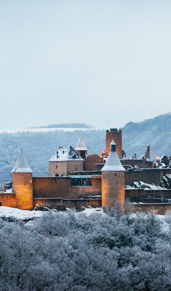Обои Замок Bourscheid Castle зимой, Буршейд, Люксембург