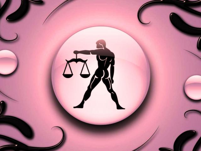 Обои Знак зодиака Весы на розовом фоне с чёрным орнаментом