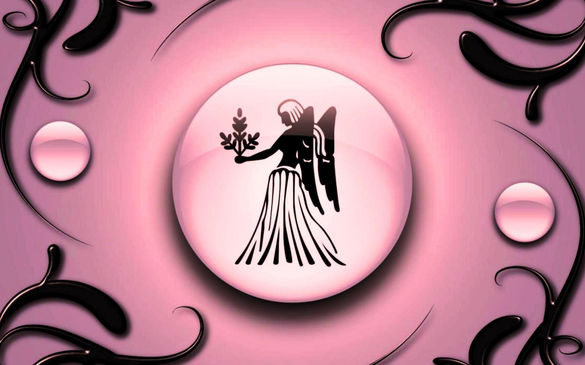 Обои Знак зодиака Дева на розовом фоне с чёрным орнаментом