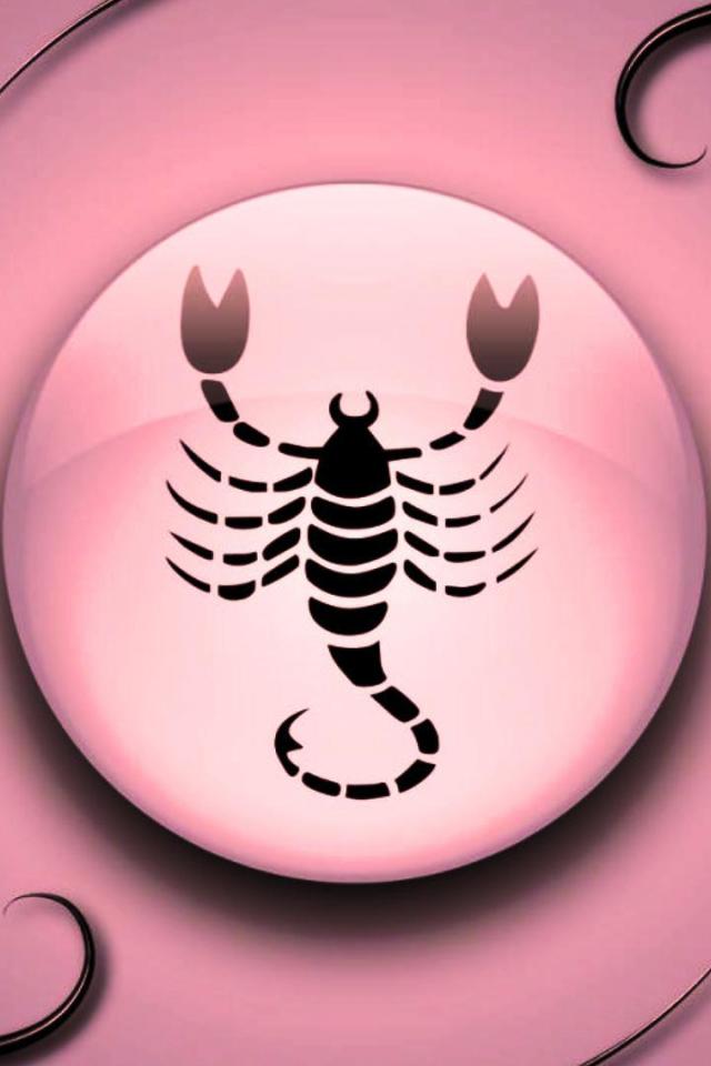 Обои Знак зодиака Скорпион на розовом фоне с чёрным орнаментом
