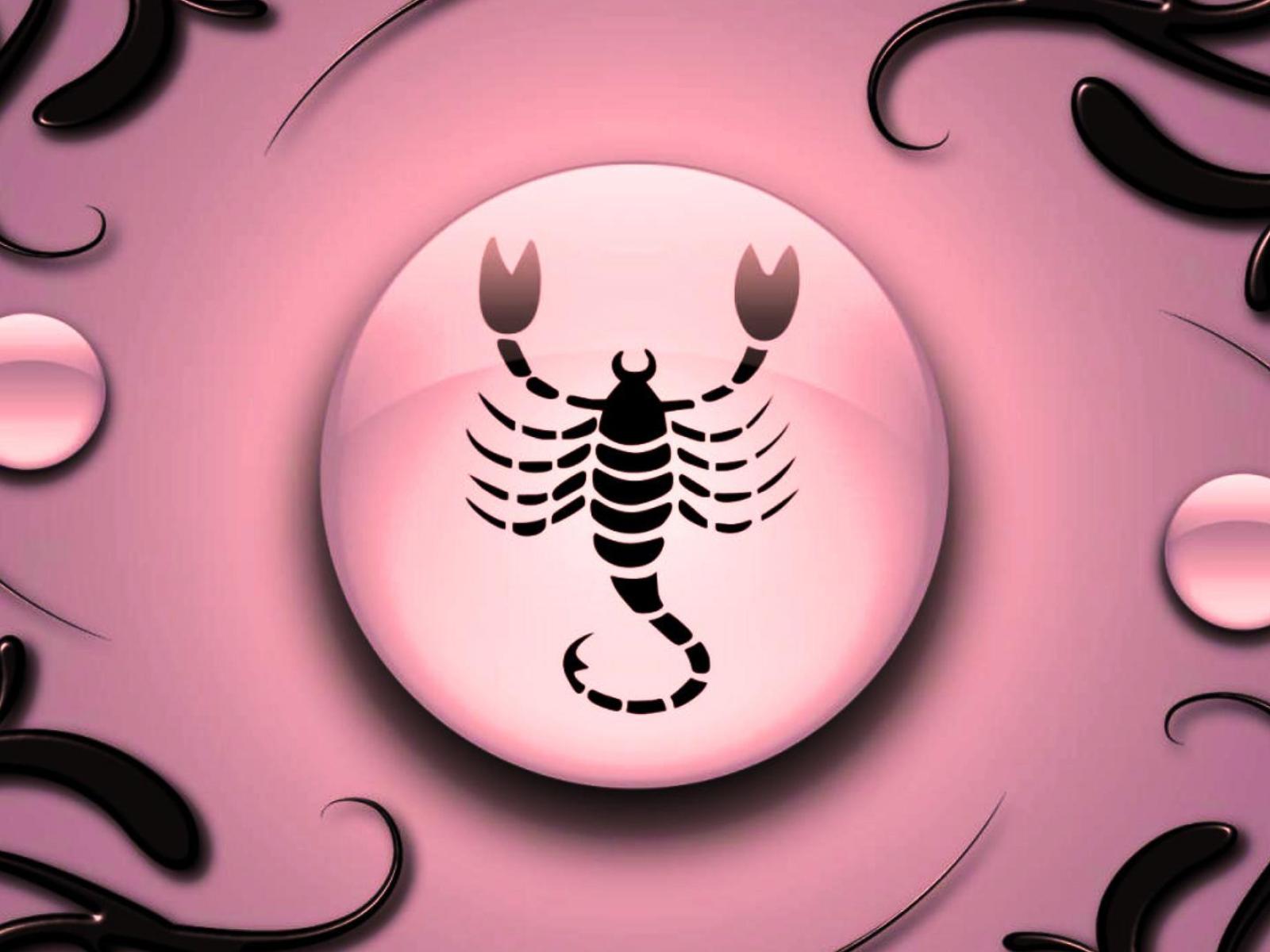Обои Знак зодиака Скорпион на розовом фоне с чёрным орнаментом