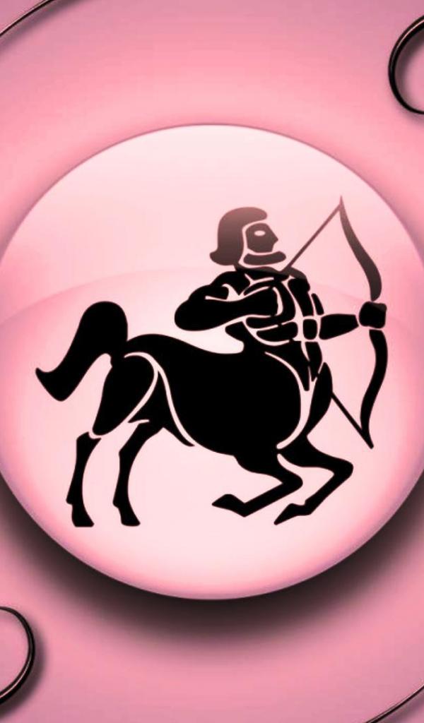 Обои Знак зодиака Стрелец на розовом фоне с чёрным орнаментом