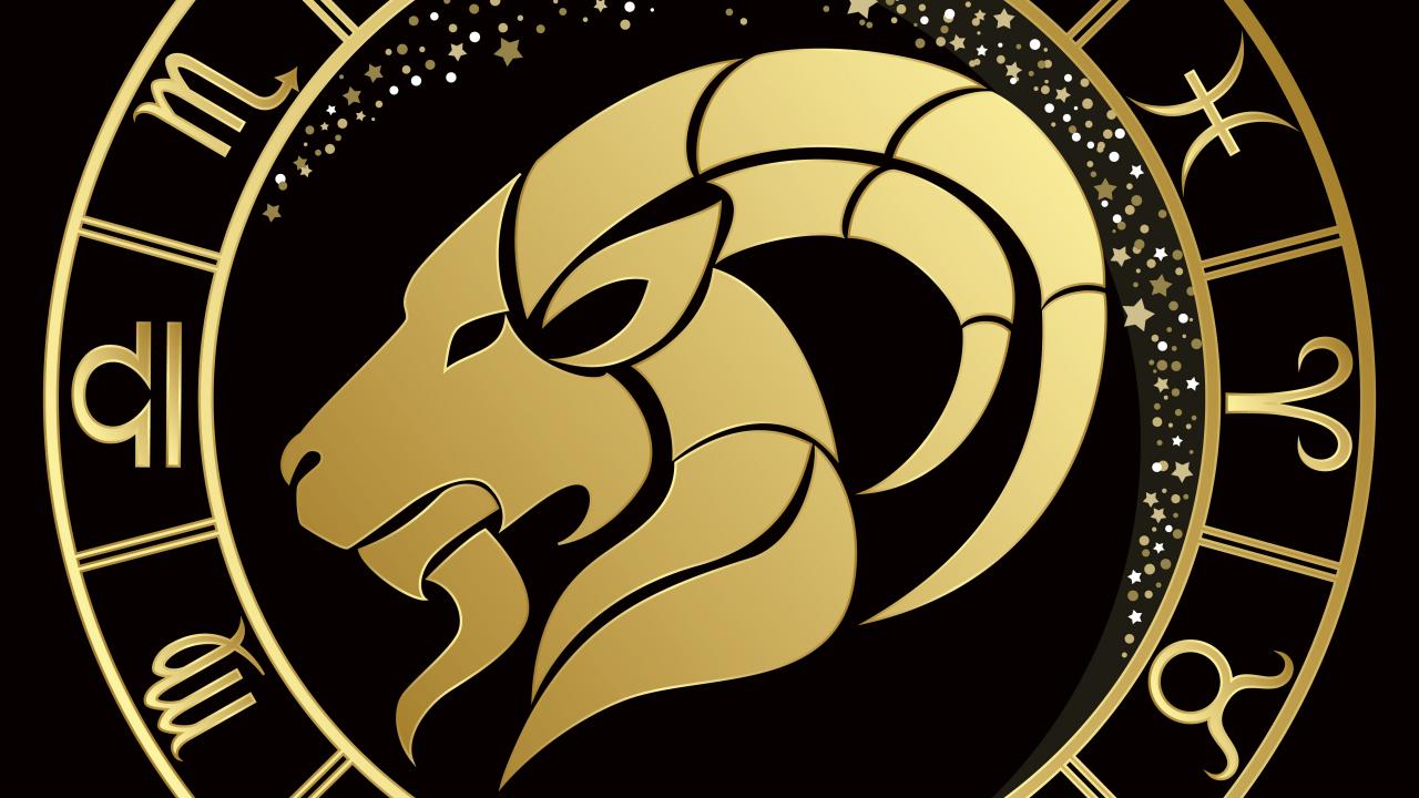 Обои Золотой знак зодиака козерог на черном фоне