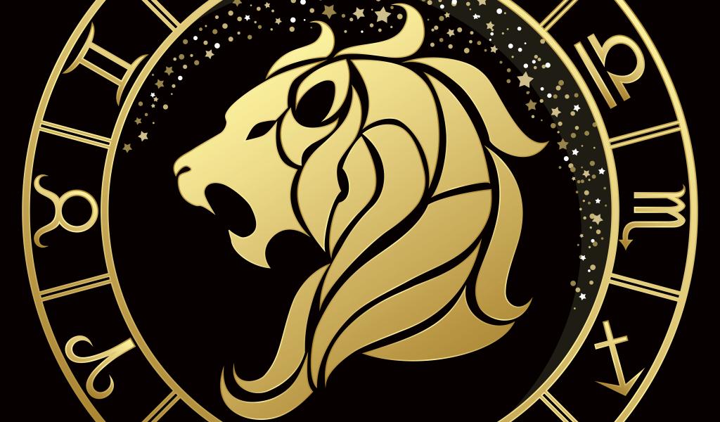 Обои Золотой знак зодиака лев на черном фоне