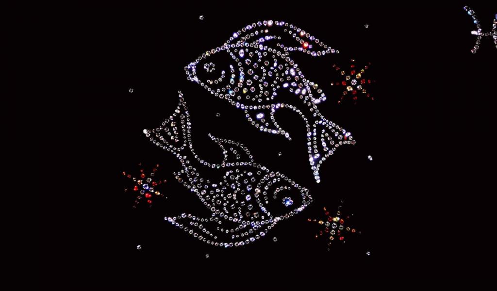 Обои Блестящий знак зодиака рыбы на черном фоне