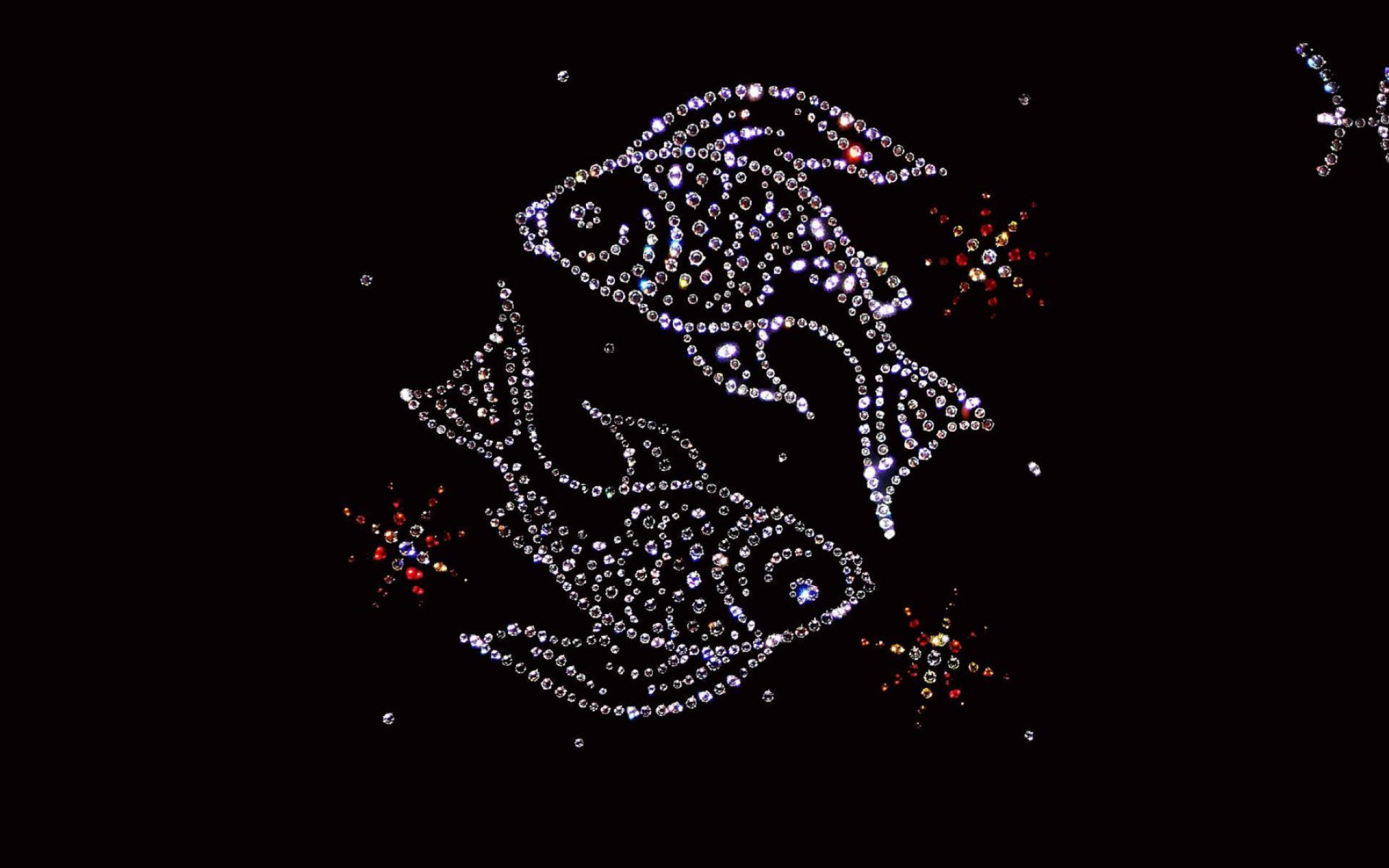 Обои Блестящий знак зодиака рыбы на черном фоне