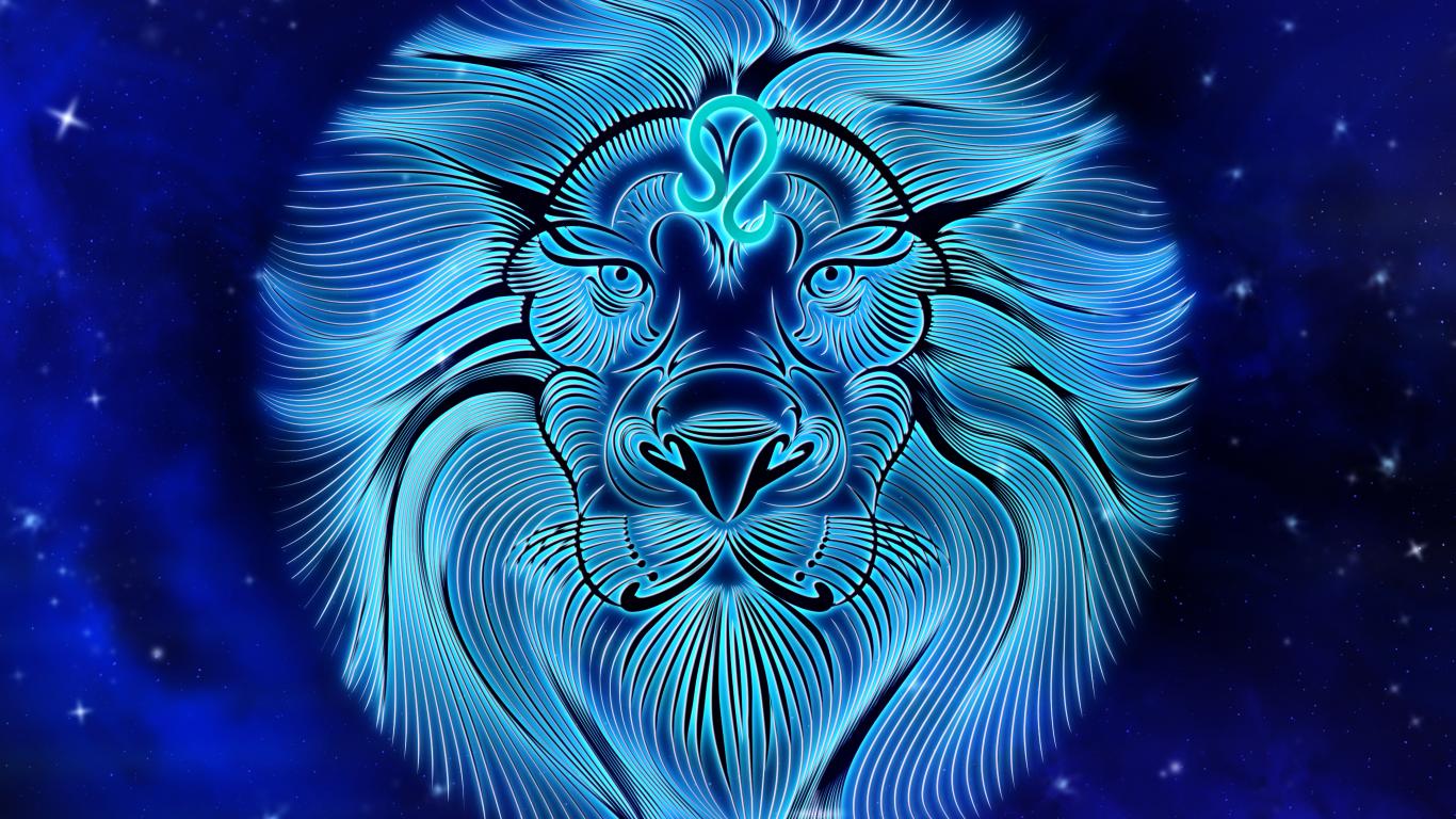 Обои Красивый знак зодиака лев на синем фоне