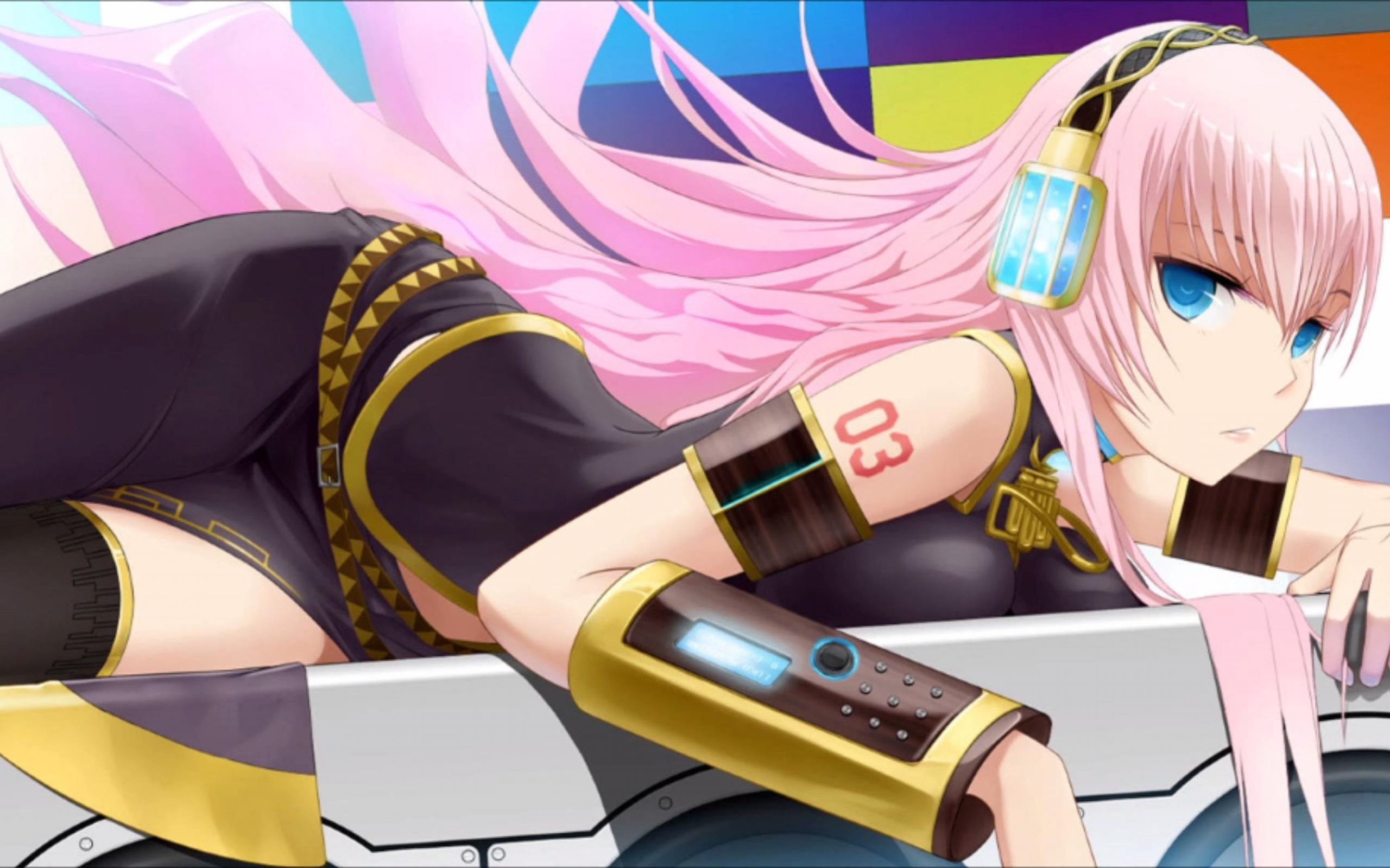 Обои Аниме девушка с розовыми волосами в голубых наушниках, вокалоид