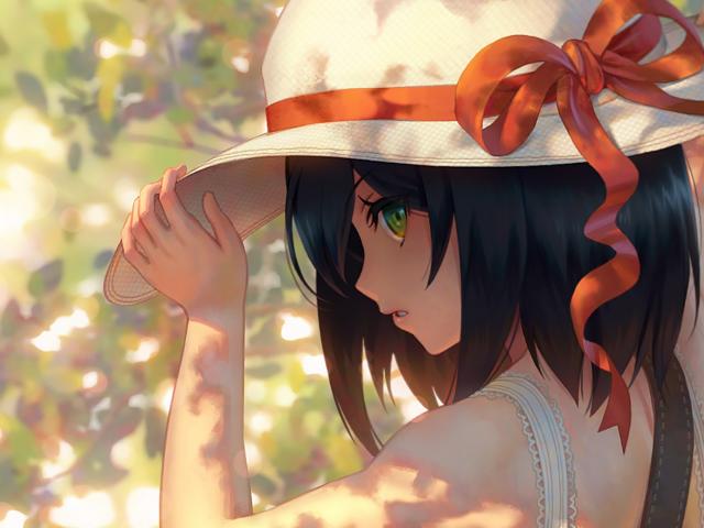 Обои Аниме девушка в шляпе с красным бантом