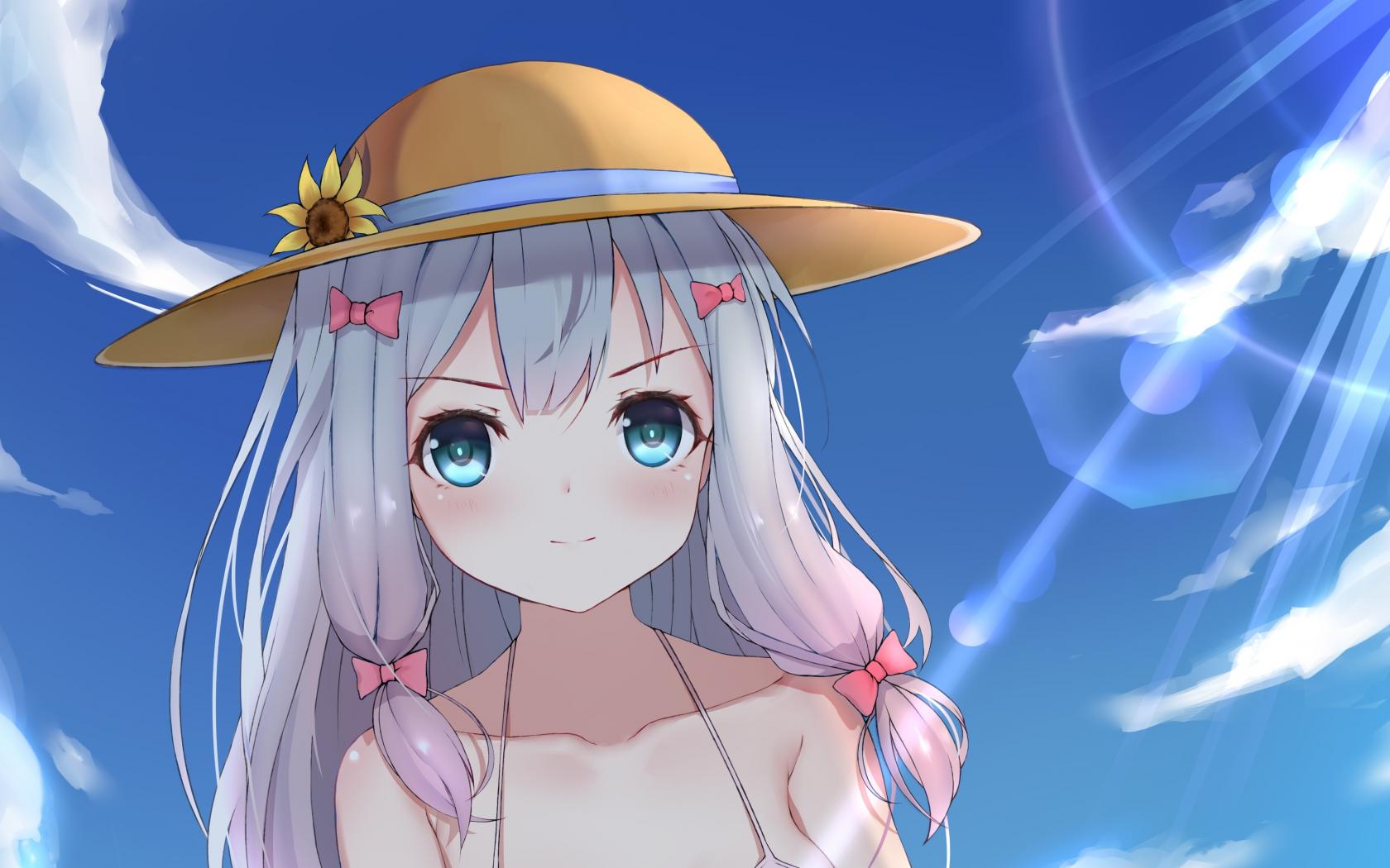 Обои Девушка аниме Эроманга-Сэнсэй в шляпке на фоне неба