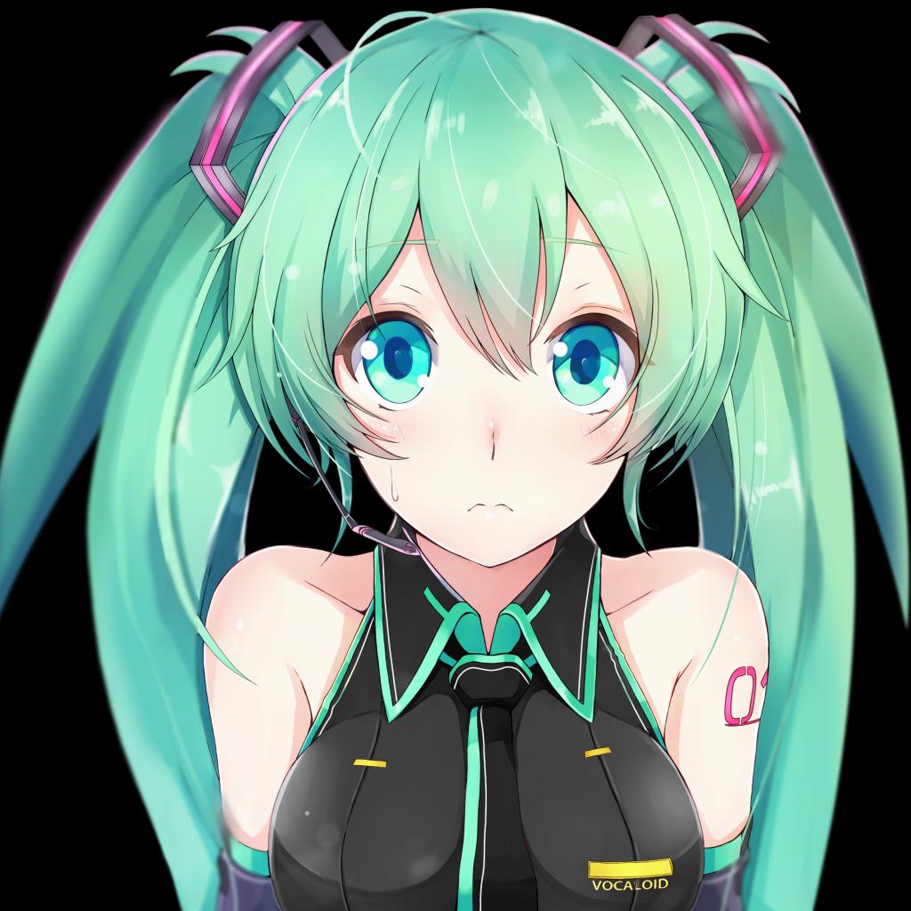Обои Девушка аниме Мику Хацунэ с голубыми волосами на черном фоне