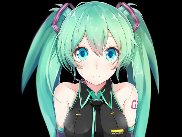 Обои Девушка аниме Мику Хацунэ с голубыми волосами на черном фоне