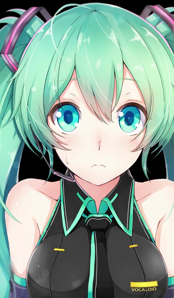 Обои Девушка аниме Мику Хацунэ с голубыми волосами на черном фоне