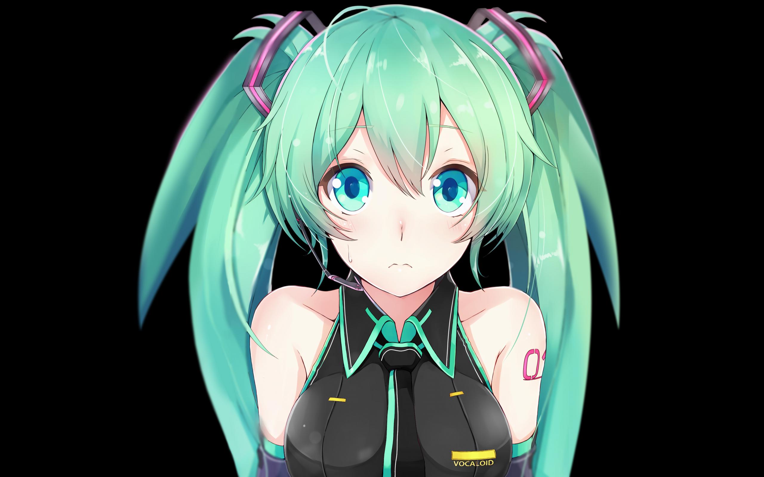 Обои Девушка аниме Мику Хацунэ с голубыми волосами на черном фоне