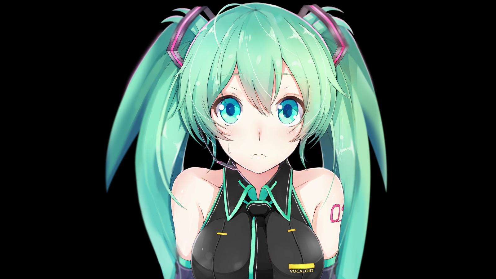 Обои Девушка аниме Мику Хацунэ с голубыми волосами на черном фоне