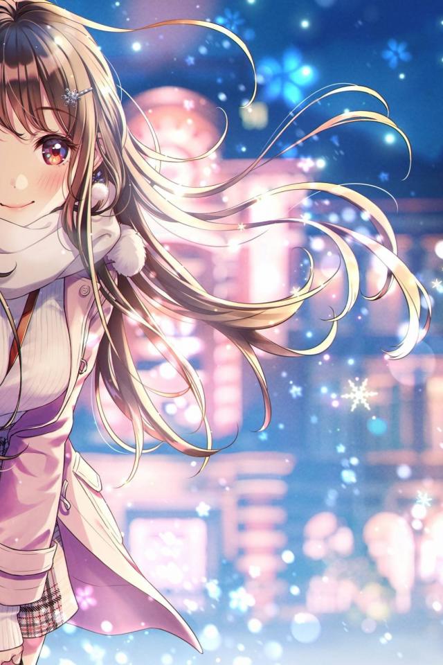 Обои Девушка азиатка с длинными волосами зимой на улице