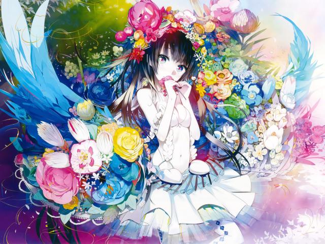 Обои Красивая девушка аниме в цветах