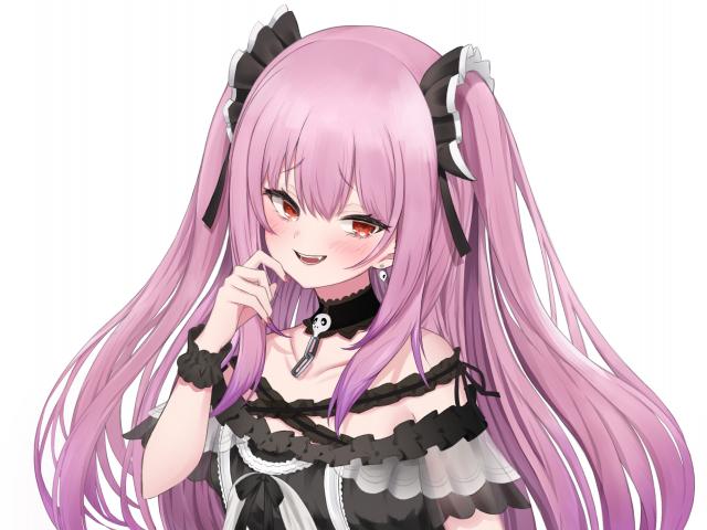 Обои Девушка аниме с розовыми волосами на белом фоне