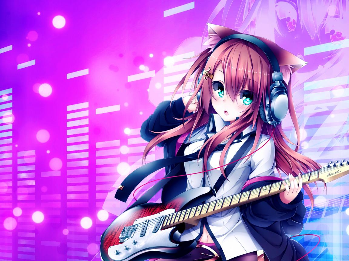 Обои Девушка с гитарой, аниме Кэмономими