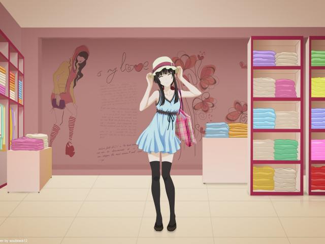 Обои Девушка в магазине одежды, аниме
