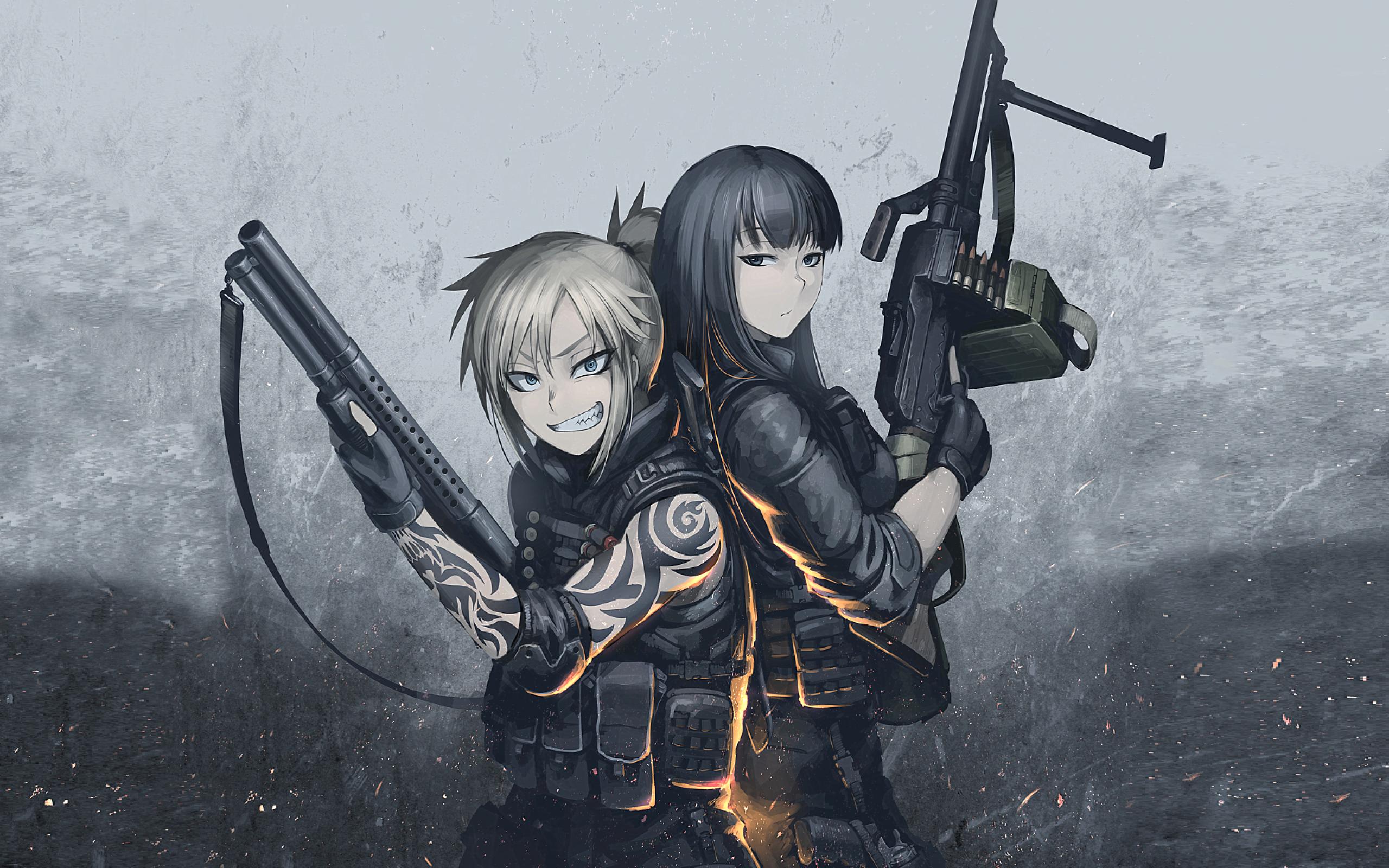 Обои Две девушки солдаты аниме
