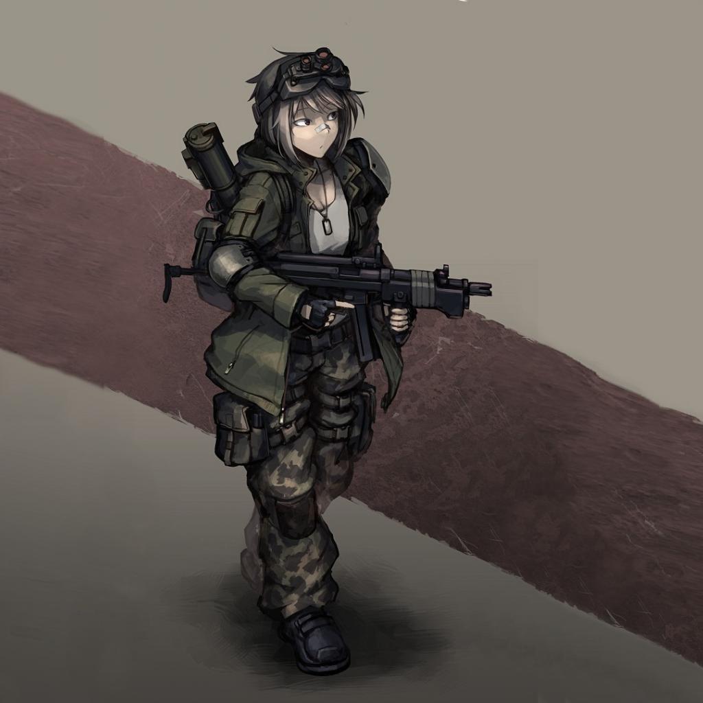 Обои Аниме девушка солдат с оружием