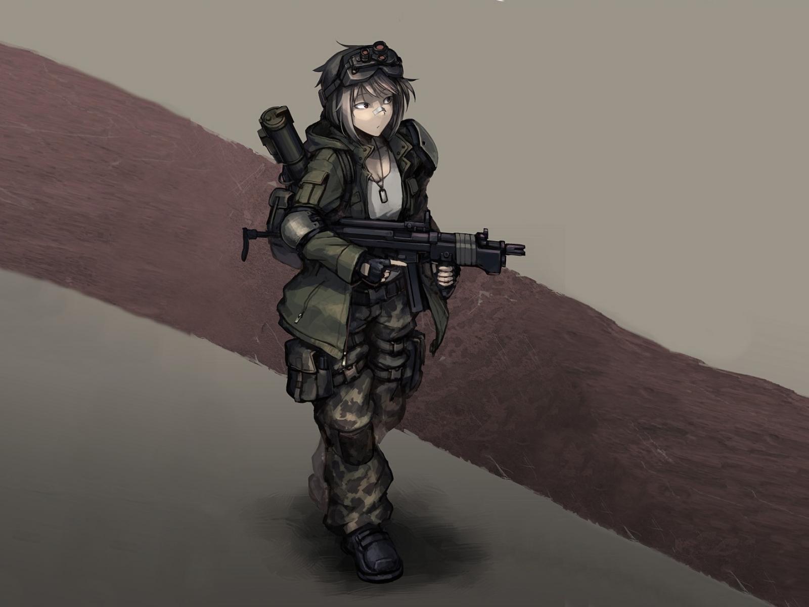 Обои Аниме девушка солдат с оружием