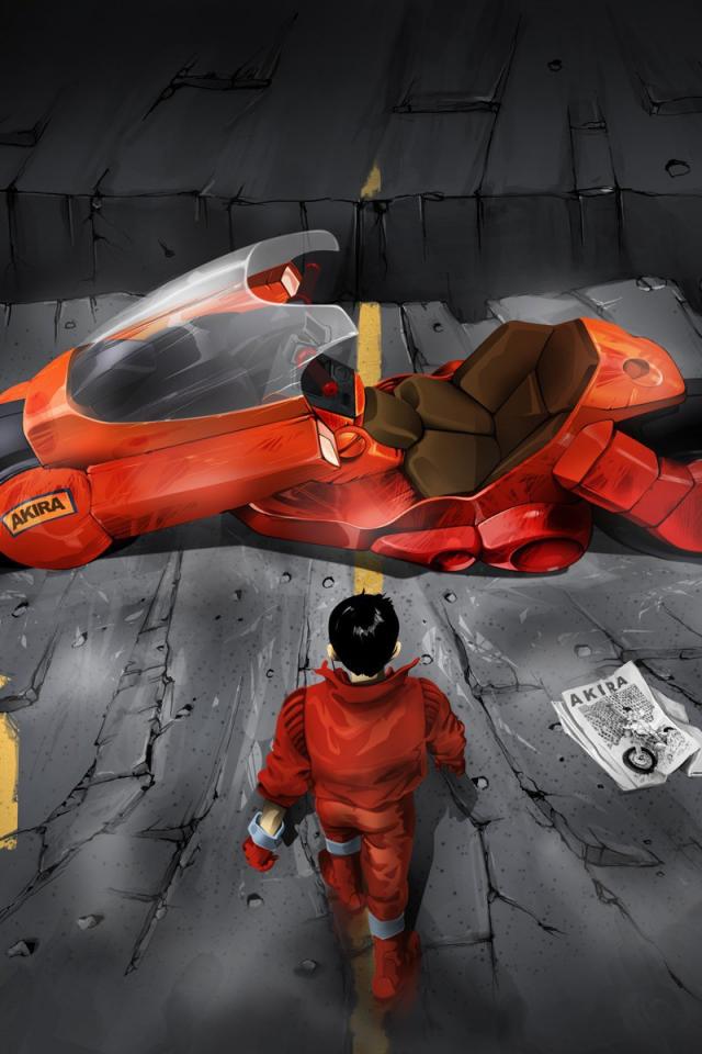 Обои Акира у своего мотоцикла, аниме