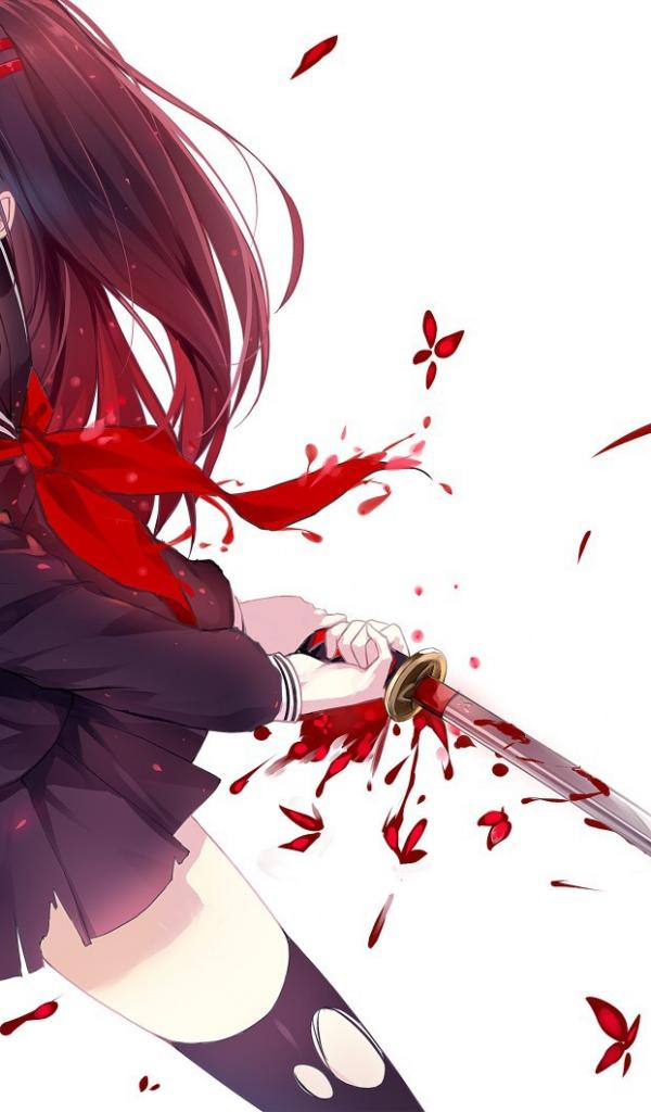 Обои Девушка аниме держит катану с каплями крови
