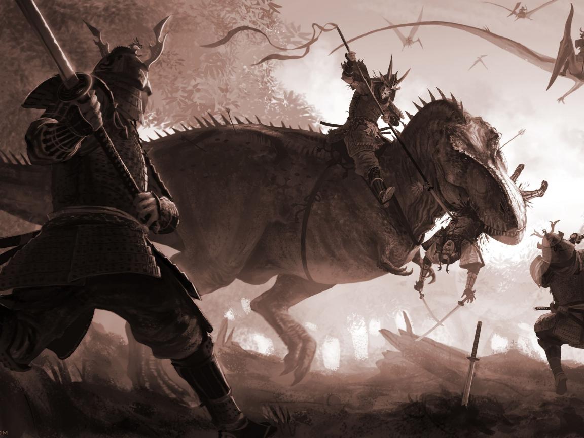 Обои Воин на динозавре, аниме