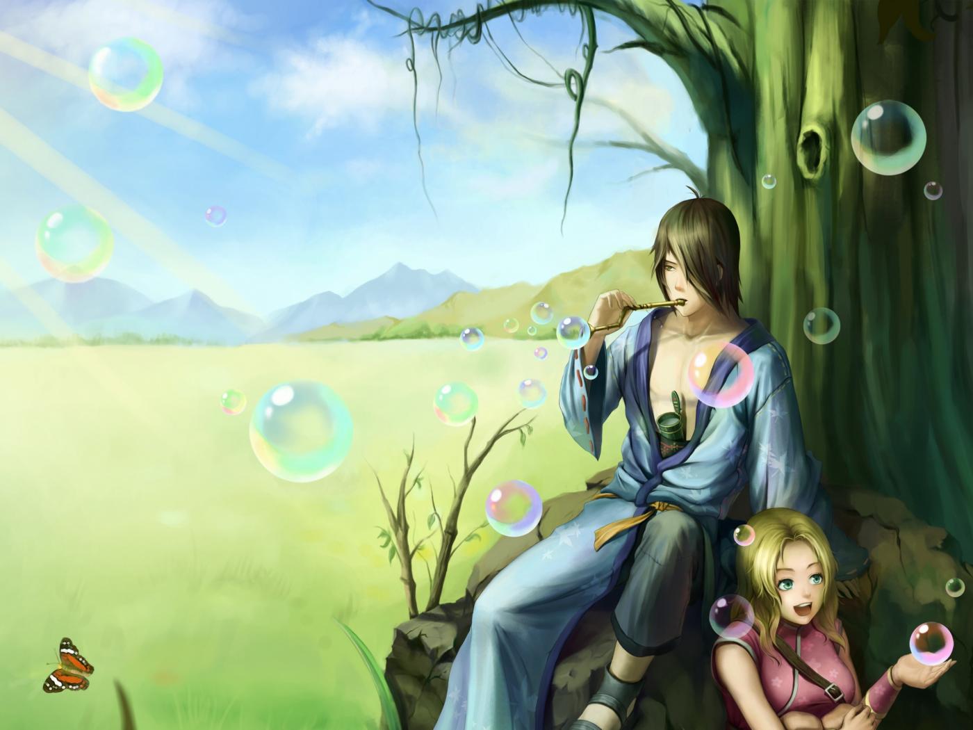 Обои Наруто среди мыльных пузырей, аниме
