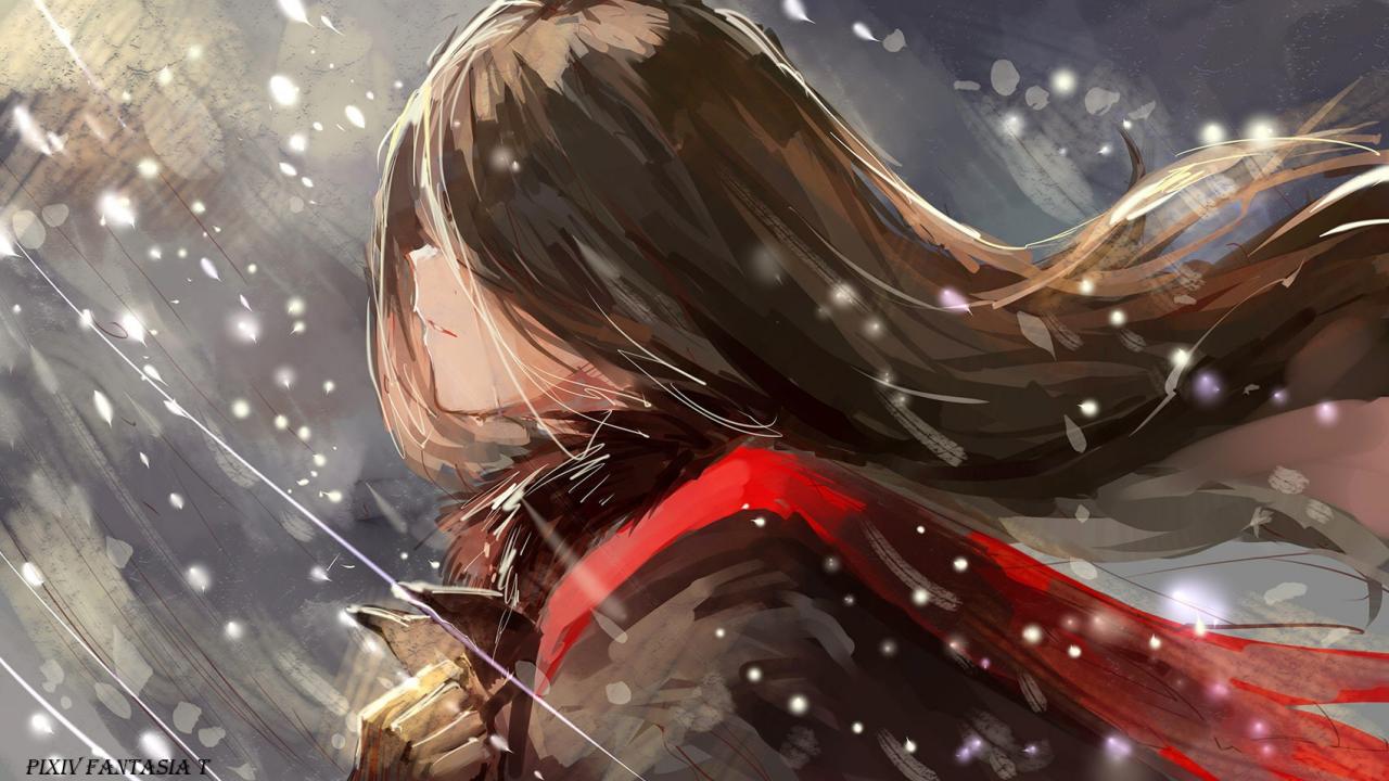 Обои Девушка во время снегопада аниме Pixiv Fantasia