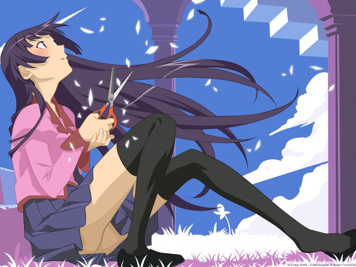 Обои Девушка с ножницами в аниме Bakemonogatari