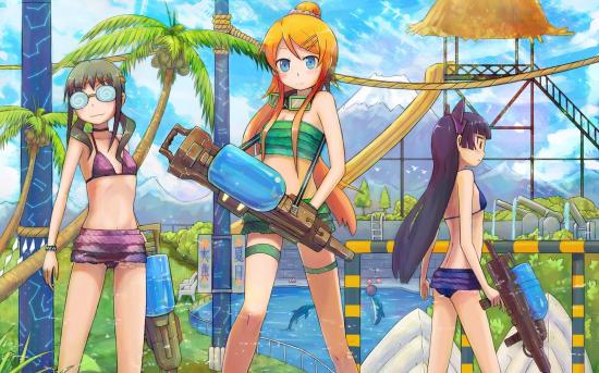 Обои Девушки в аквапарке в аниме Моя сестренка не может быть такой милашкой