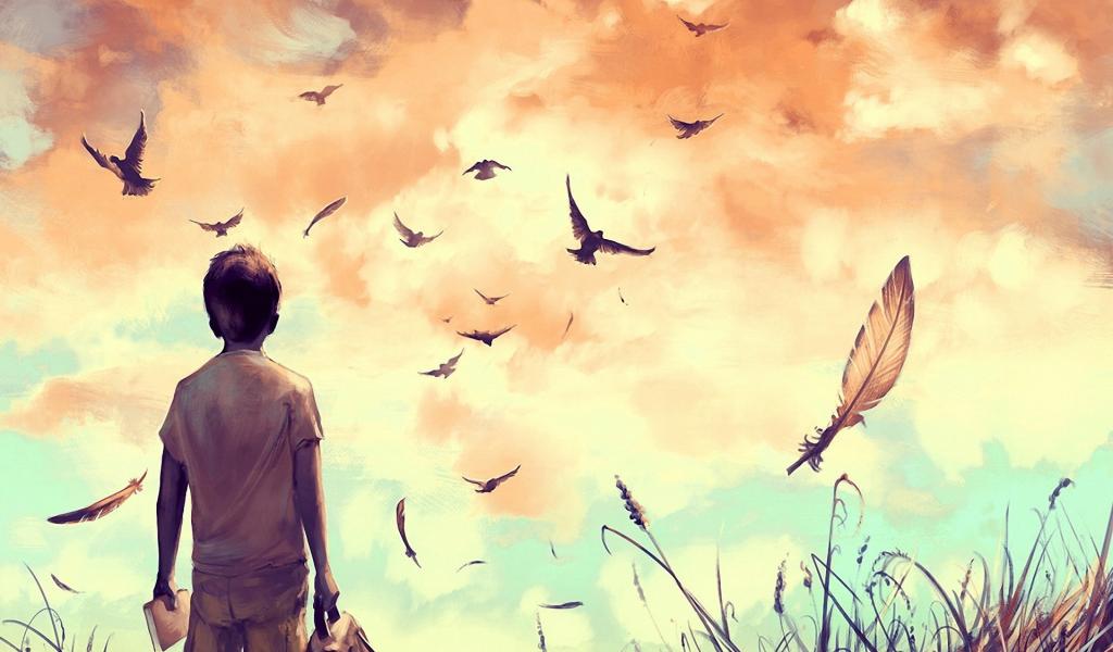 Обои Мальчик смотрит на птиц