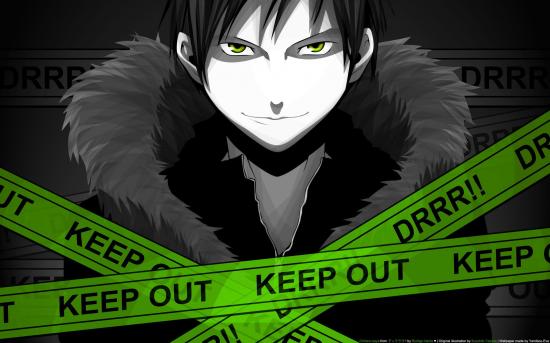Обои Герой аниме Дюрарара!! позади полицейских ленточек