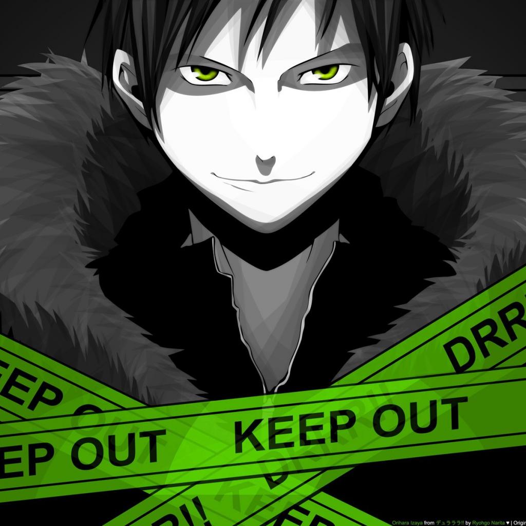 Обои Герой аниме Дюрарара!! позади полицейских ленточек