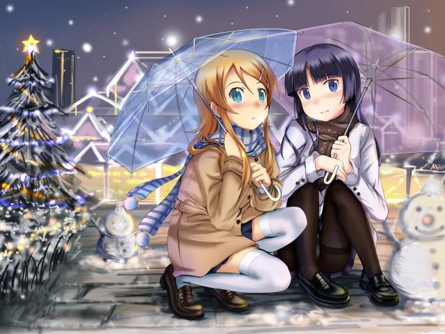Обои Девочки аниме под прозрачными зонтиками