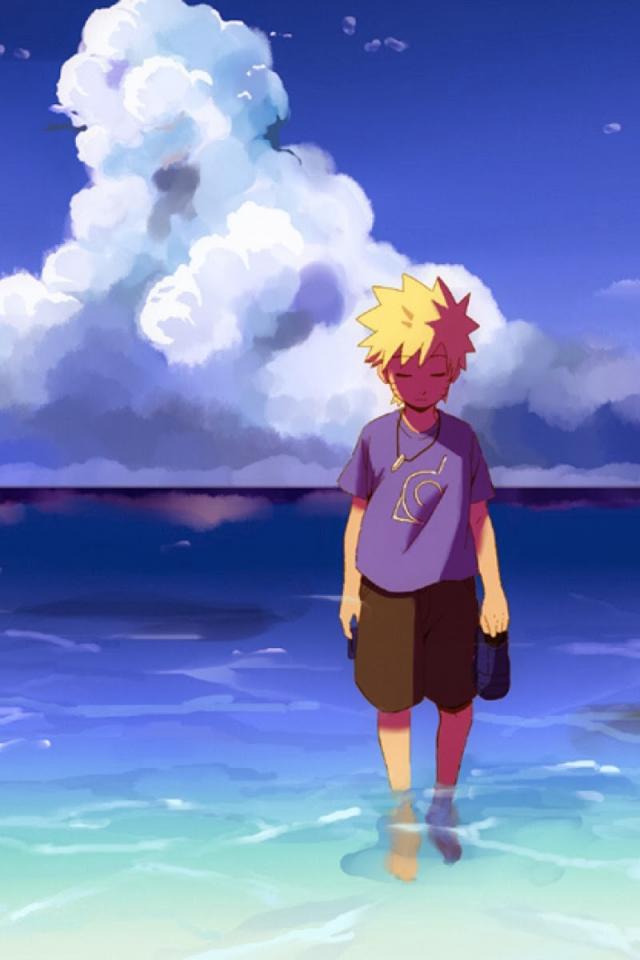 Обои Мальчик стоит в воде у берега, аниме Наруто