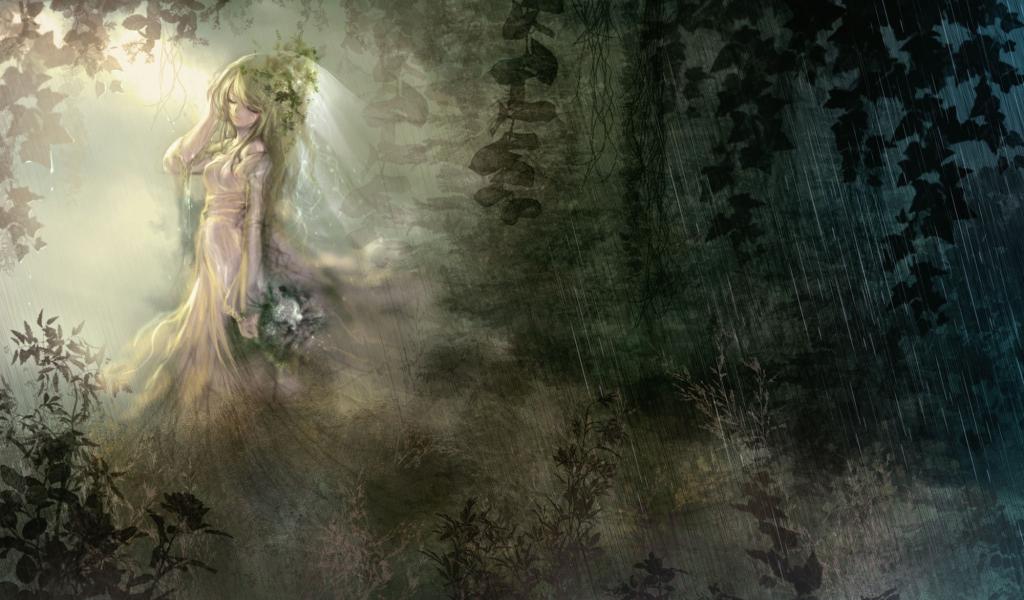 Обои Аниме девушка под дождем