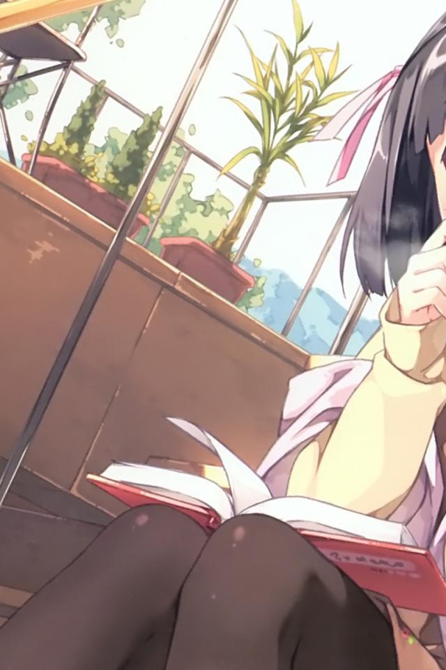 Обои Девушка пьет чай в аниме Одному лишь Богу ведомый мир