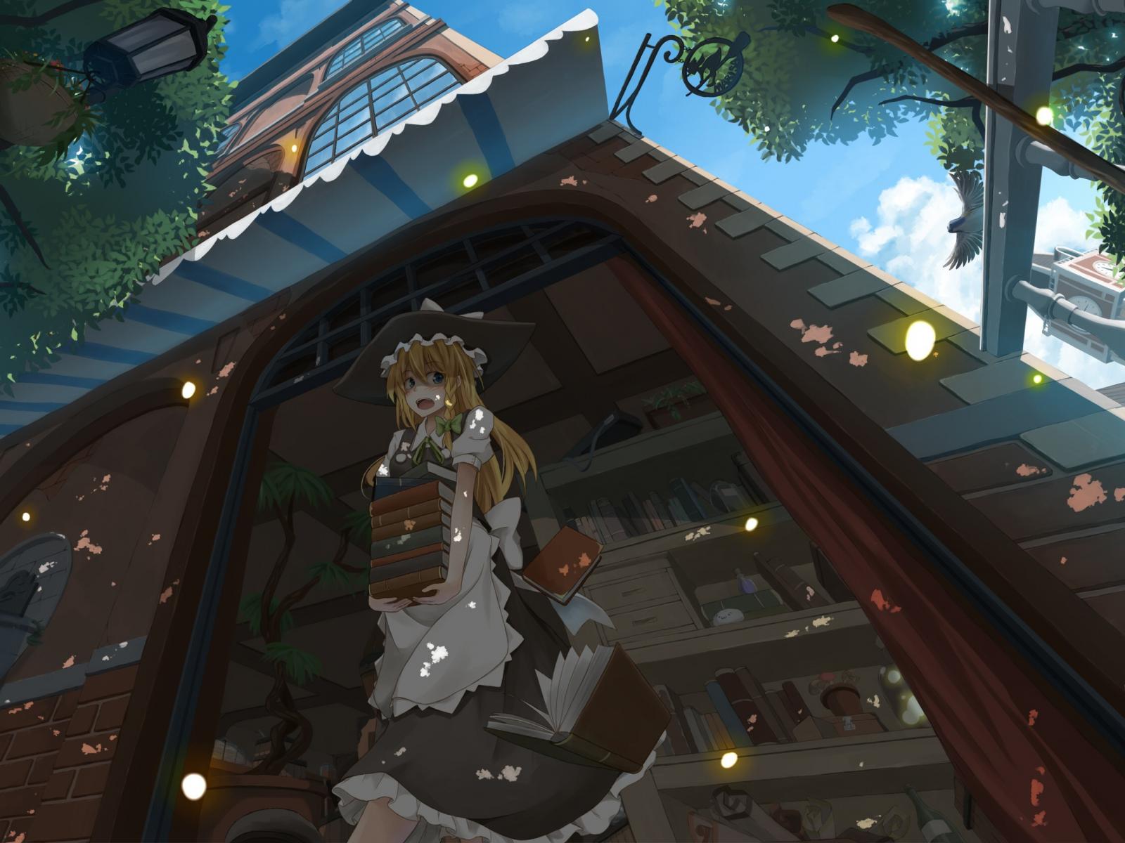 » Обои Девушка аниме со стопкой книг